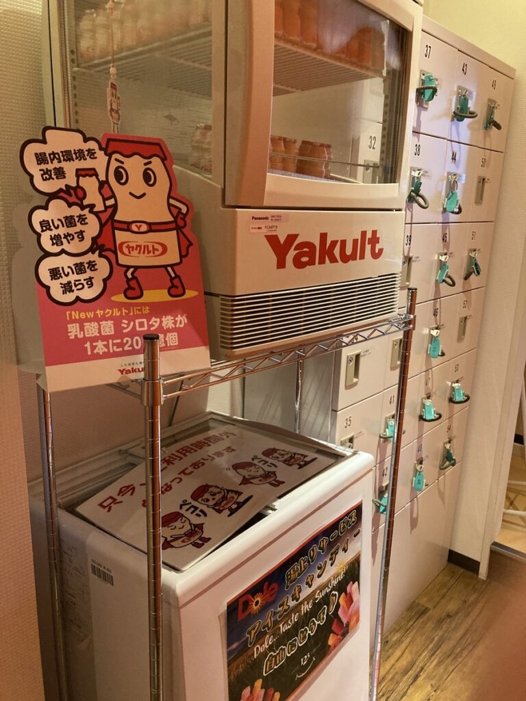 大浴場でさっぱりした後に、右側コインランドリー前にアイスキャンディーとヤクルトの無料サービスが!